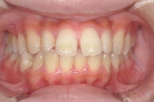 永久歯列が完成する時期になっても小帯の付着部位が歯の根元近くまで伸びていると、前歯の間にすき間が残り正中離開が生じやすいです。