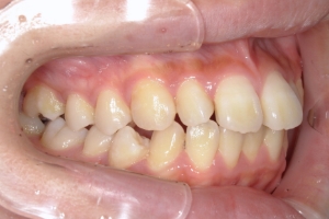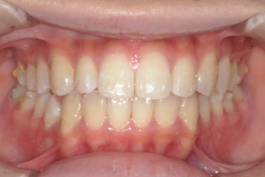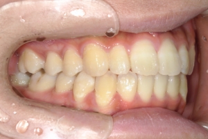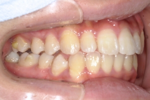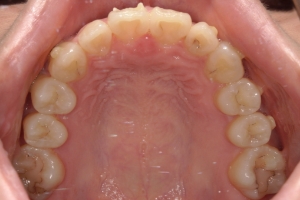 下の前歯が上の前歯の根元を突き上げるような深い噛み合わせの場合、上の前歯が前に押されてすき間ができることがあります。