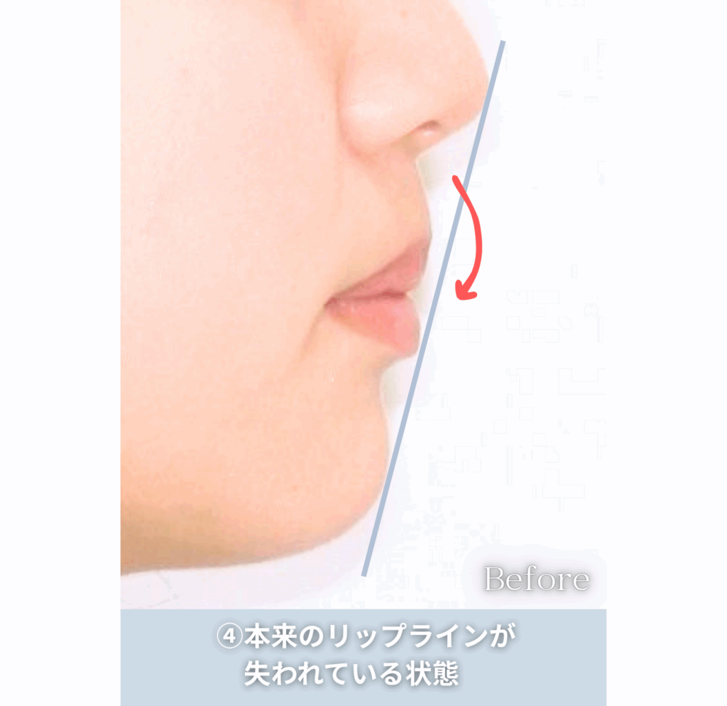 こうしたタイプの口元は、見た目の問題だけでなく、「口が閉じにくい」「力を抜くと少し開いてしまう」といった機能面にも影響することがあります。